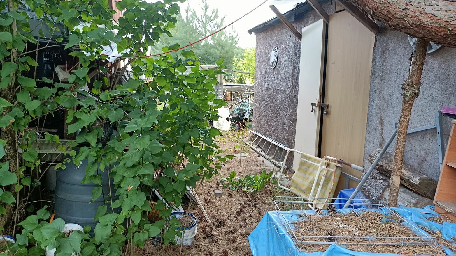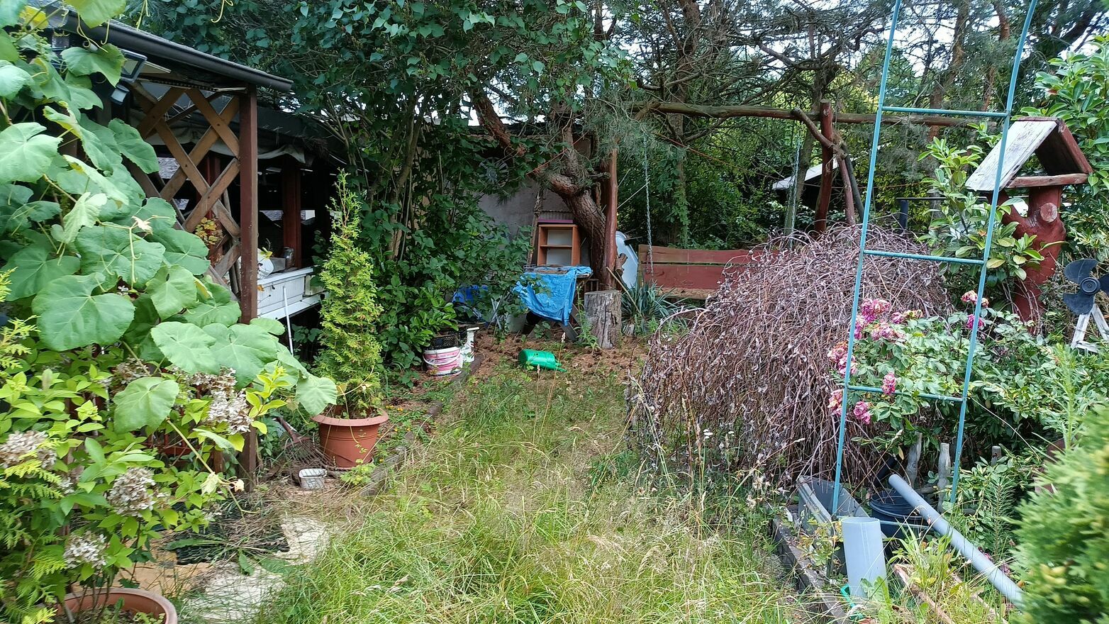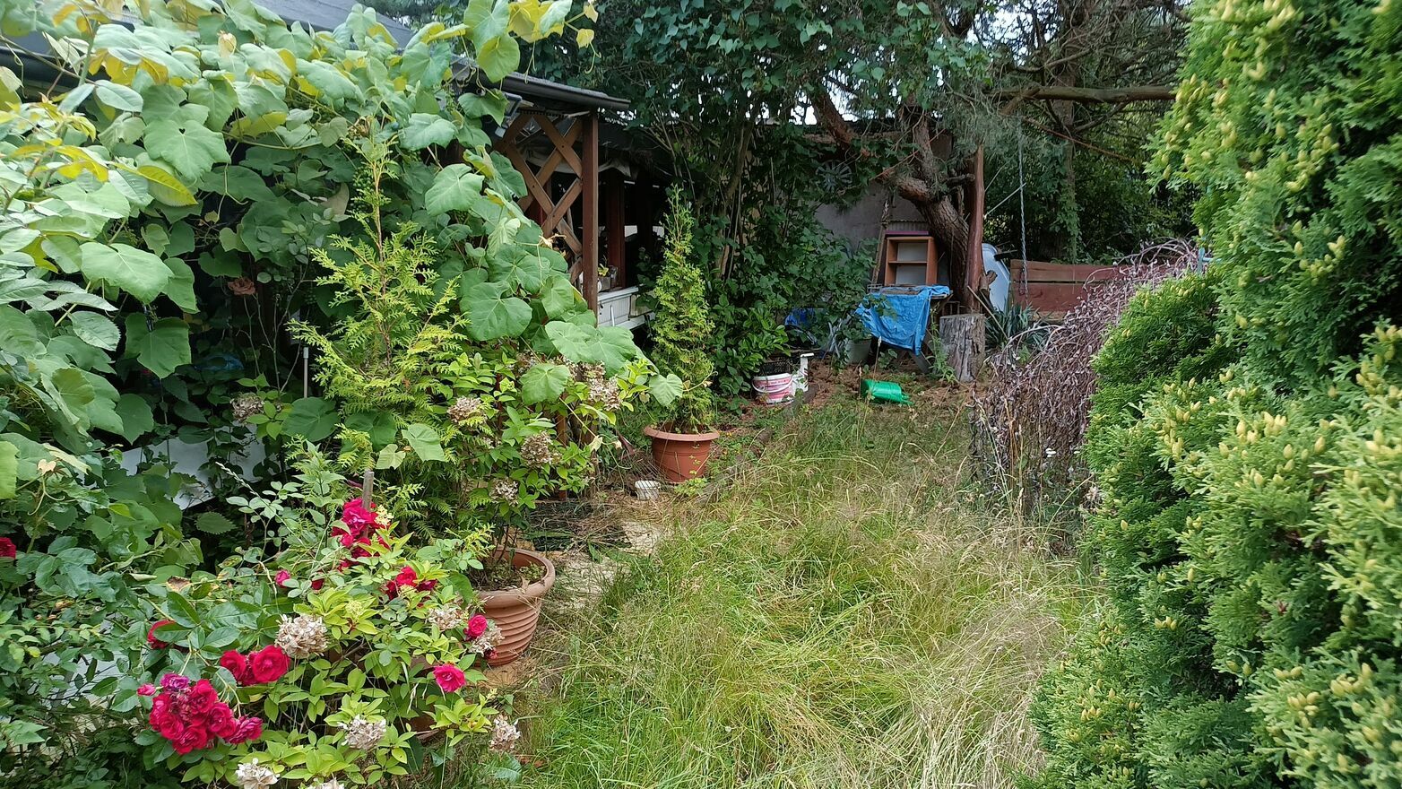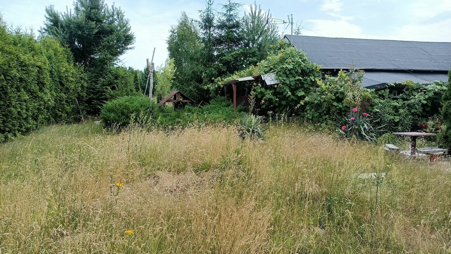 Na działce znajduje się duży domek holenderski zabudowany wiatą.Działka wymaga posprzątania po starszej osobie.